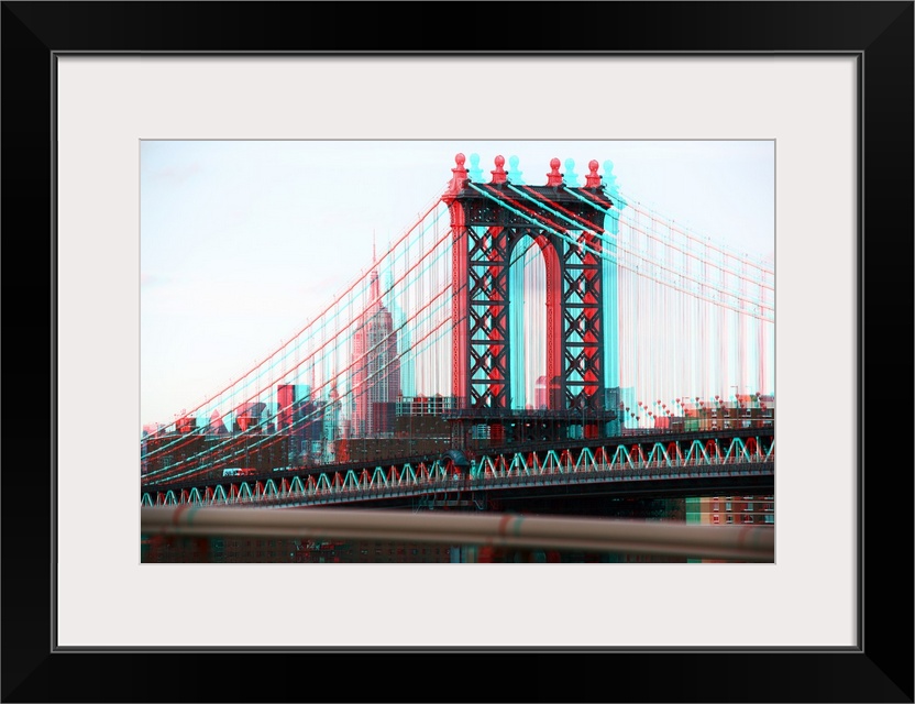 <p>Photograph of New York city architecture with multiple exposures resembling anaglyph 3D images.</p>