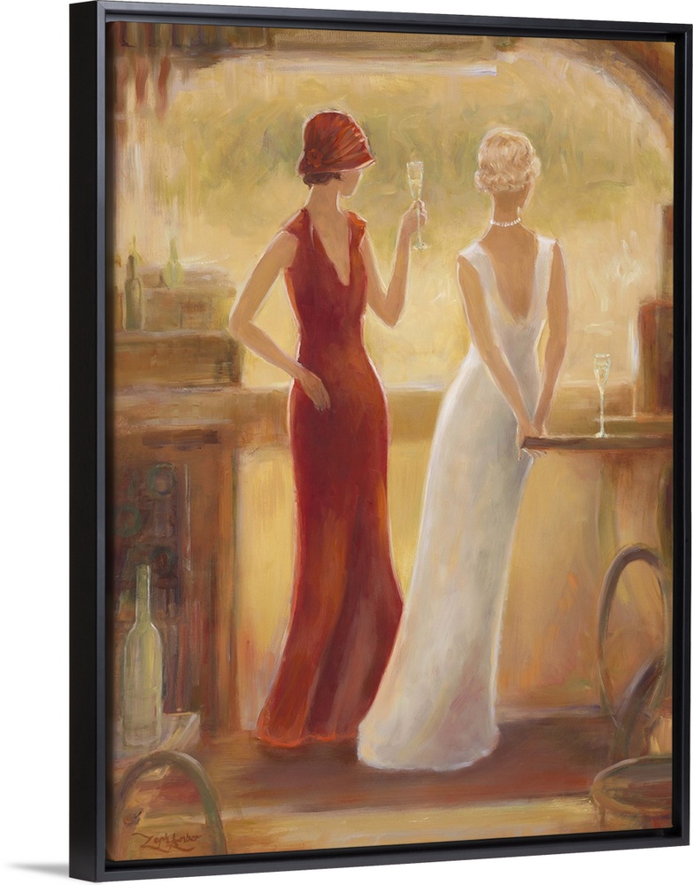 <p>Contemporary artwork of two women having an afternoon cocktail.</p>
