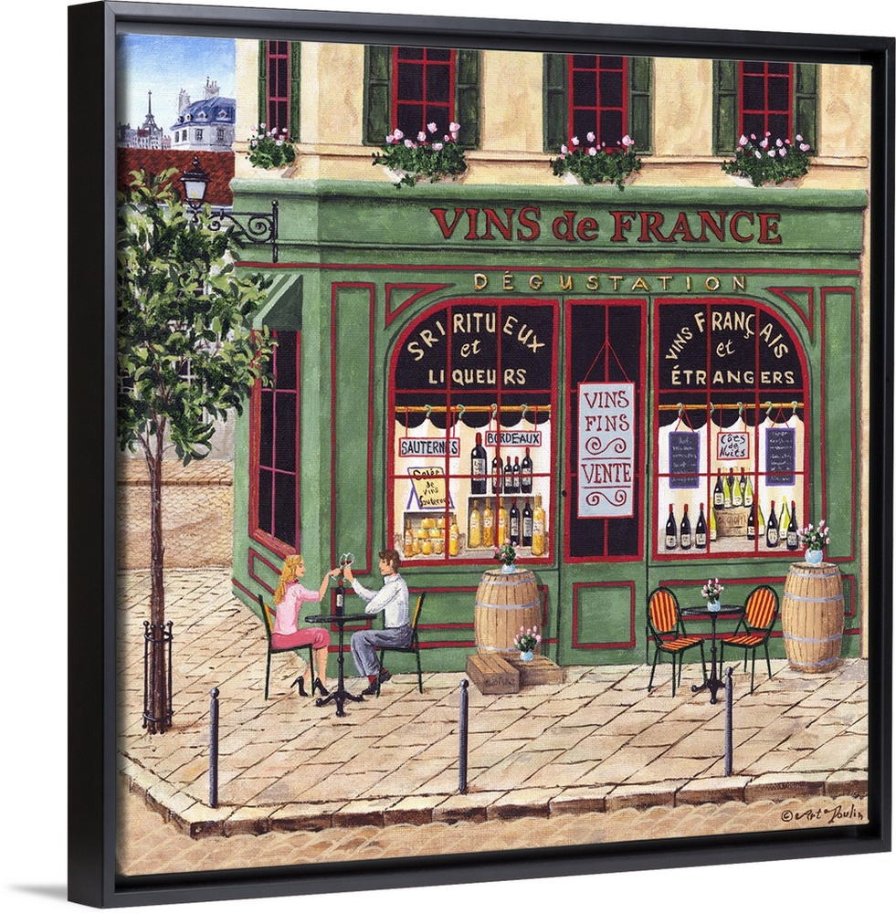 <p>Painting of a Parisian wine and liquor storefront.</p>