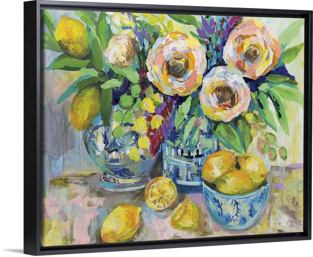 Art Traditional Contemporary Art Florals Food Fruit Lemons and Limes Painting Still Life Jeanette Vertentes Yellow Wall Art