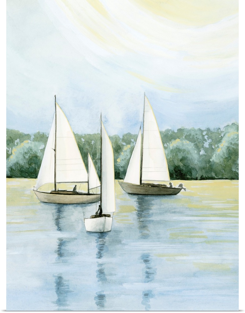 Art Coastal Blue Wall Art Decorative Art Painting Grace Popp Sailing Transportation Boat Sailboat Watercolor
