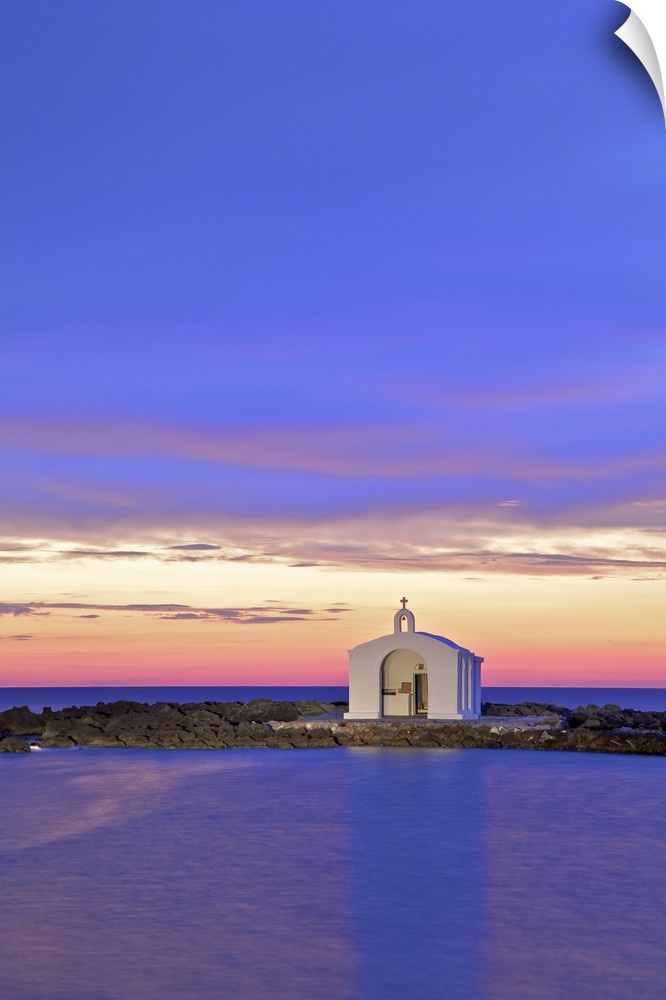 <p>Agios Nikolaos Church at Sunrise, Georgioupoli, Crete, Greek Islands, Greece, Europe</p>