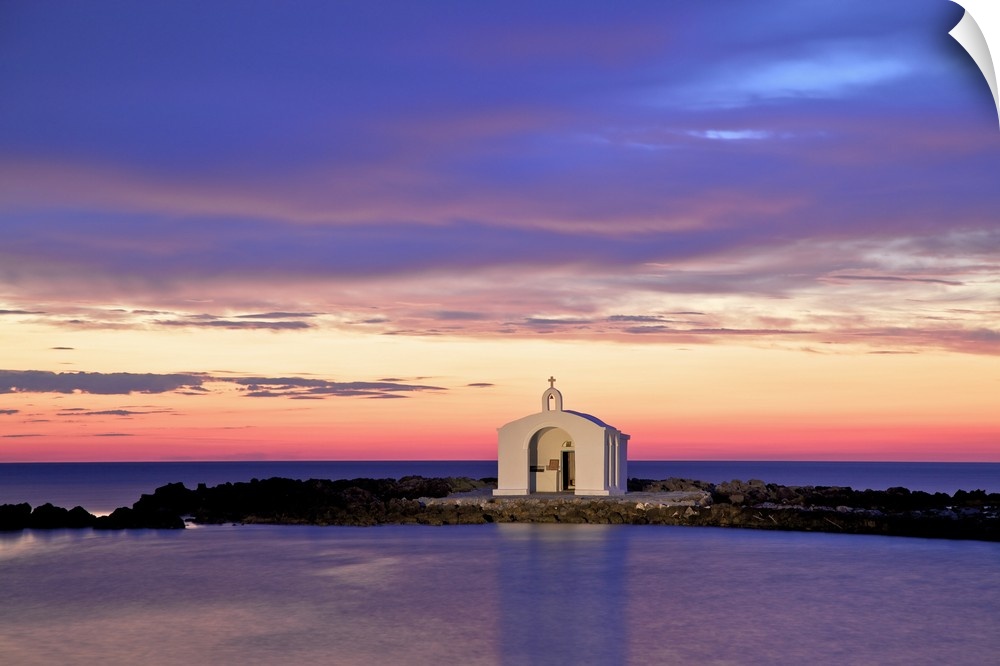 <p>Agios Nikolaos Church at Sunrise, Georgioupoli, Crete, Greek Islands, Greece, Europe</p>