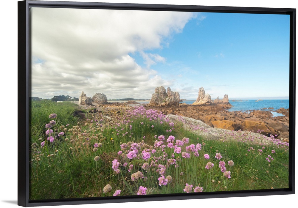 <p>Briitany landscape in Pors Scaff area with pink flowers and blue sky.</p>