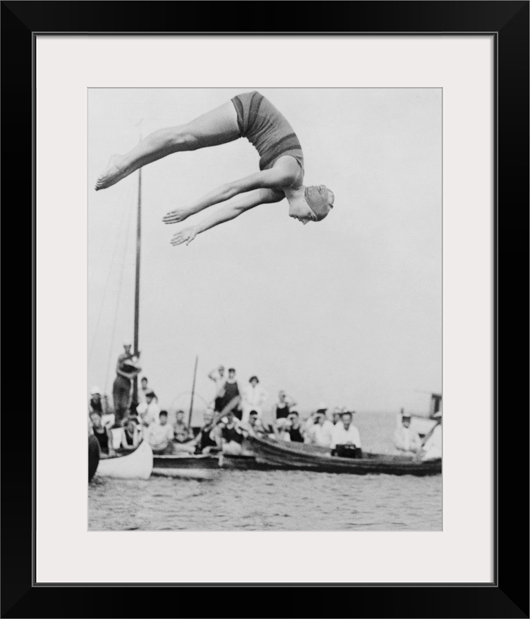 <p>Aileen Riggin at aquatic carnival of the Huguenot Boat Club, New Rochelle, N.Y, 1922. She won the gold medal at the 1920 Olympics in women's springboard diving.</p>