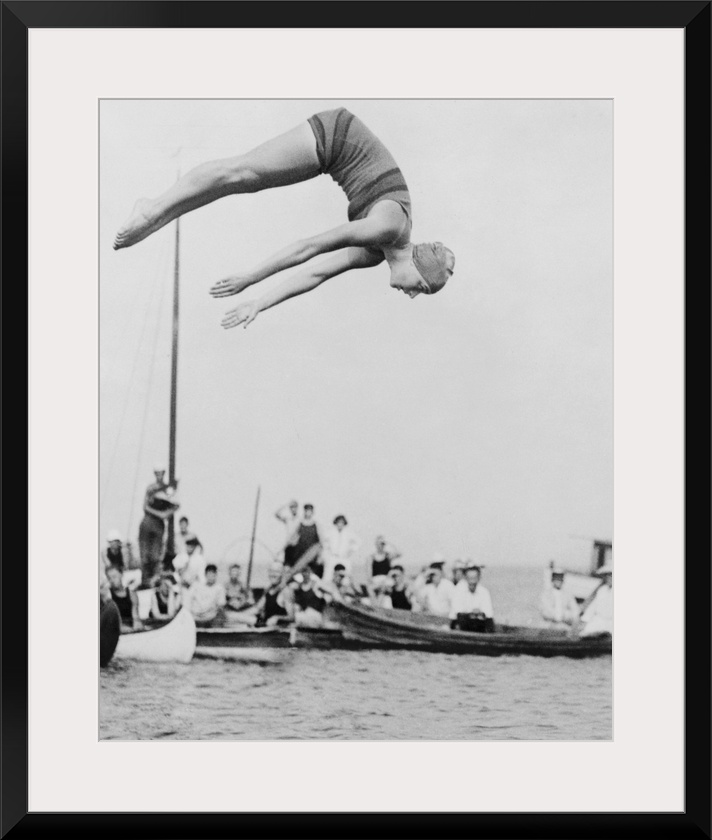 <p>Aileen Riggin at aquatic carnival of the Huguenot Boat Club, New Rochelle, N.Y, 1922. She won the gold medal at the 1920 Olympics in women's springboard diving.</p>