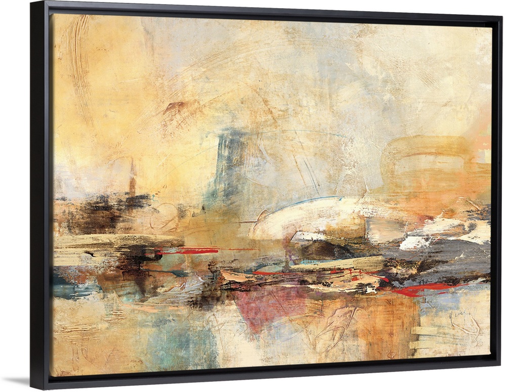 <p>Contemporary abstract art print in earthy shades of orange and grey with heavy brush textures.</p>
