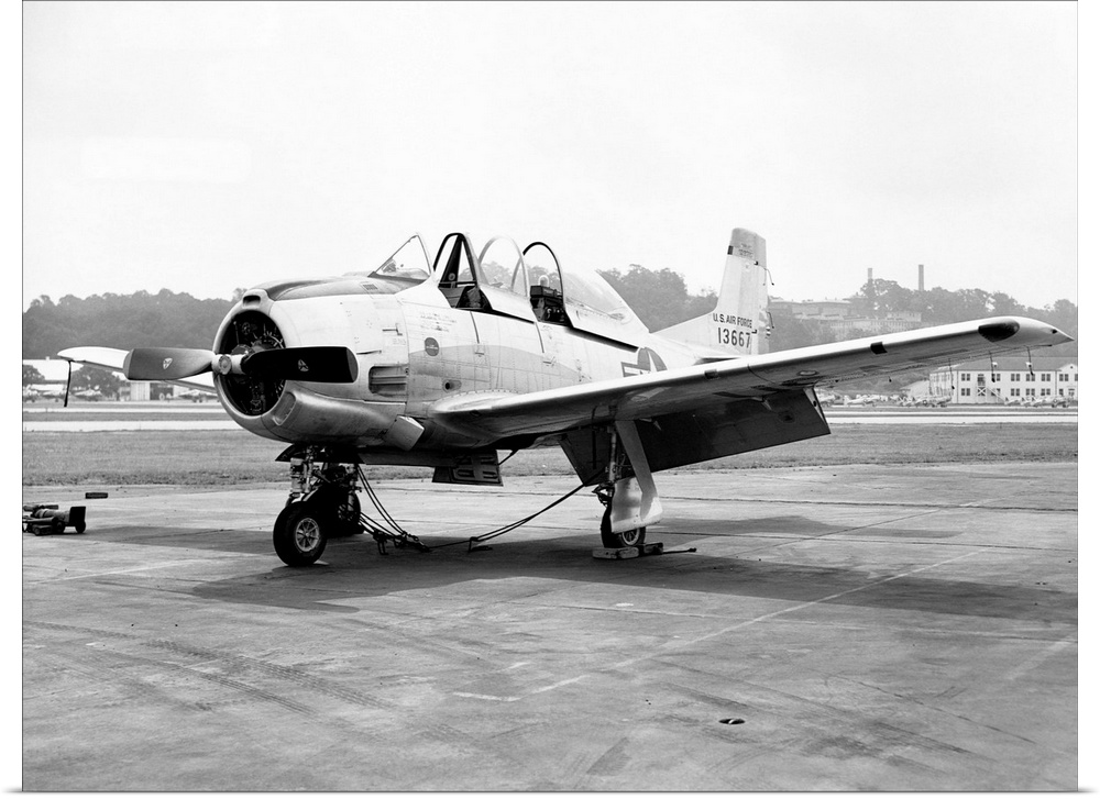 <p>Air Force trainer T-28 at NAS Anacostia DC for change of insignia. July 7, 1952</p>