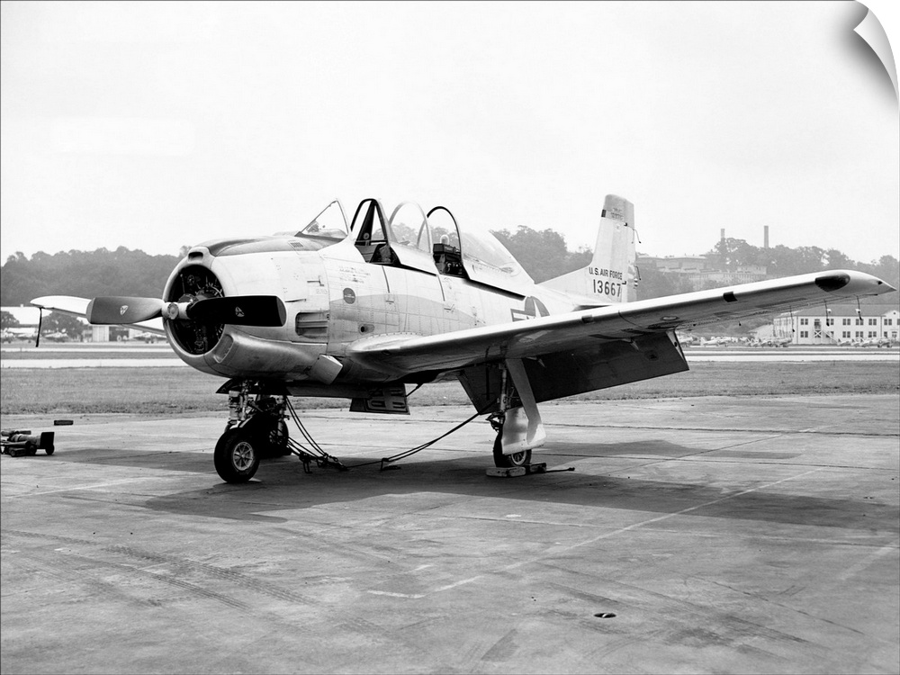 <p>Air Force trainer T-28 at NAS Anacostia DC for change of insignia. July 7, 1952</p>