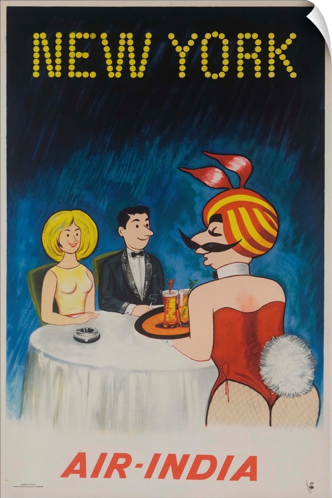 <p>ca 1970s, from a series of Air India posters each using the Air India mascot Maharajah</p>
