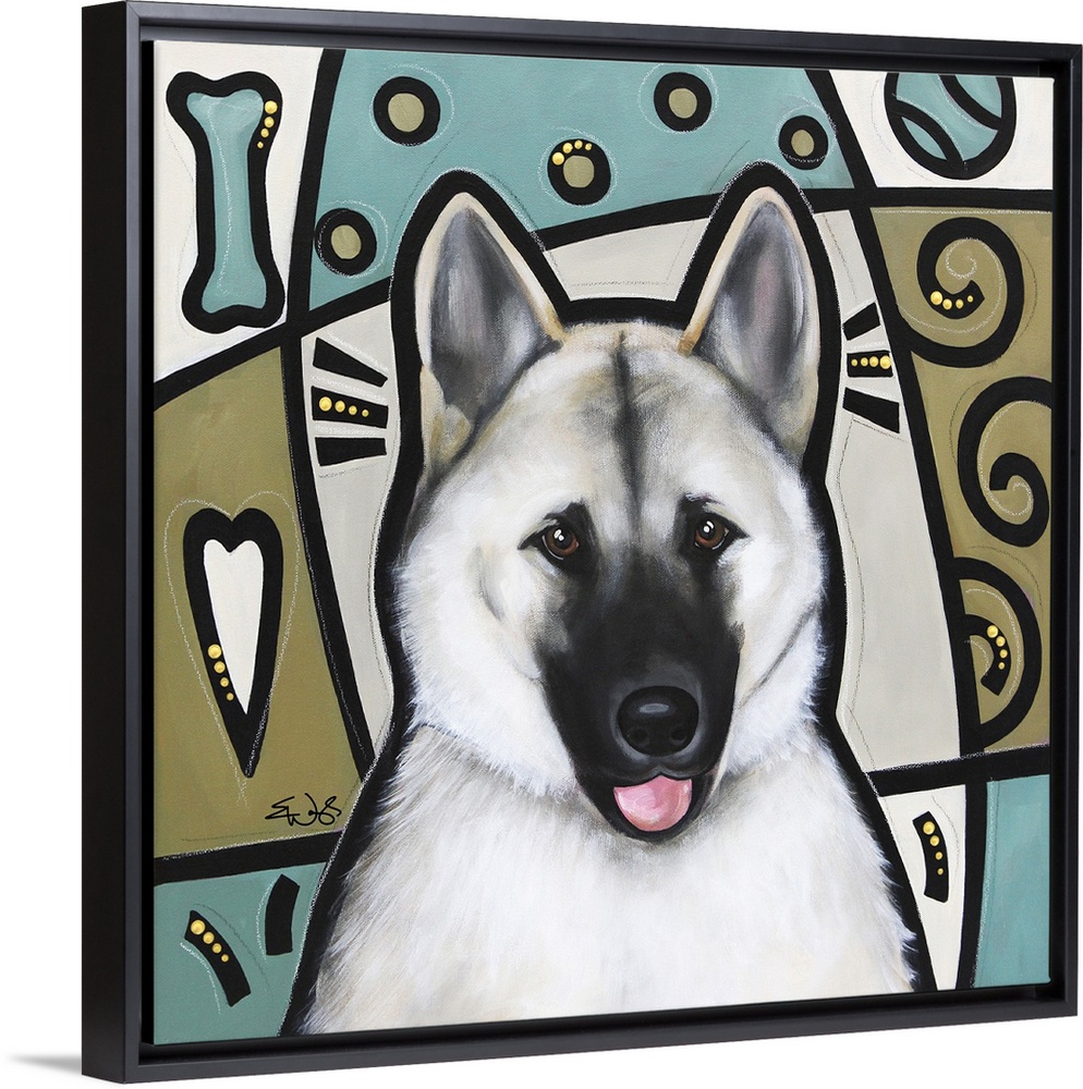 <p>Pop art painting of an Akita dog with bold outlines and colorful patterns.</p>