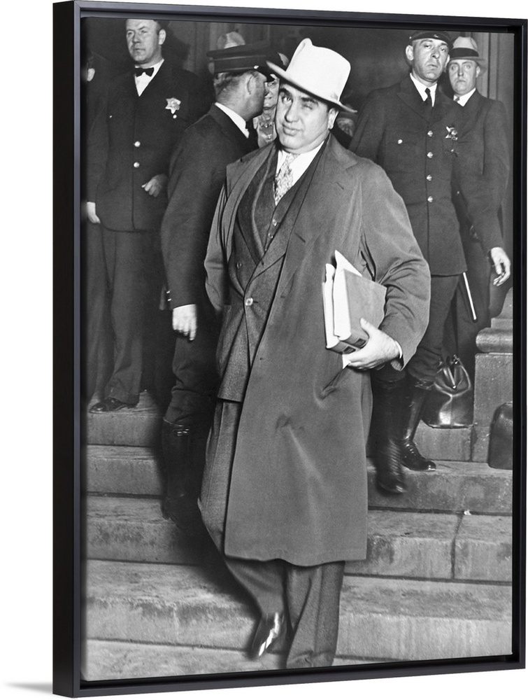 <p>Al Capone, winks at photographers as he leaves Chicago's federal courthouse. October 14, 1931. The notorious Chicago gangster was on trial for tax evasion.</p>