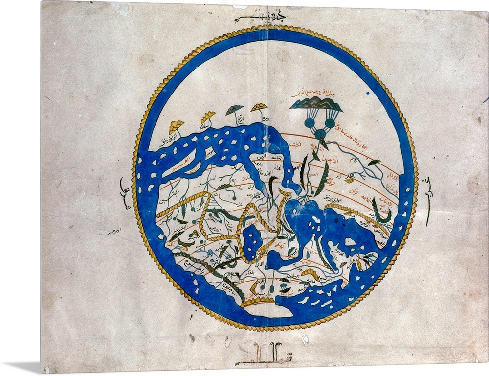 <p>Al-Idrisi's World Map. Showing Arab Lands At the Top, 12th Century.</p>