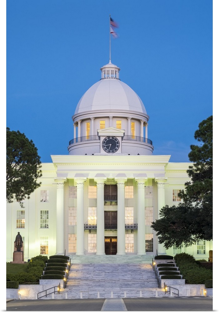 <p>United States, Alabama, Montgomery. Alabama State Capitol building at dusk, former First Confederate Capitol, built 185051.</p>