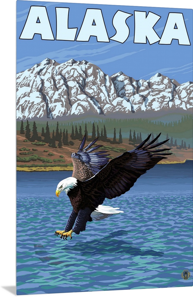 Art Alaska Travel Posters Retro Travel Posters Wildlife Bird Birds of Prey Eagle