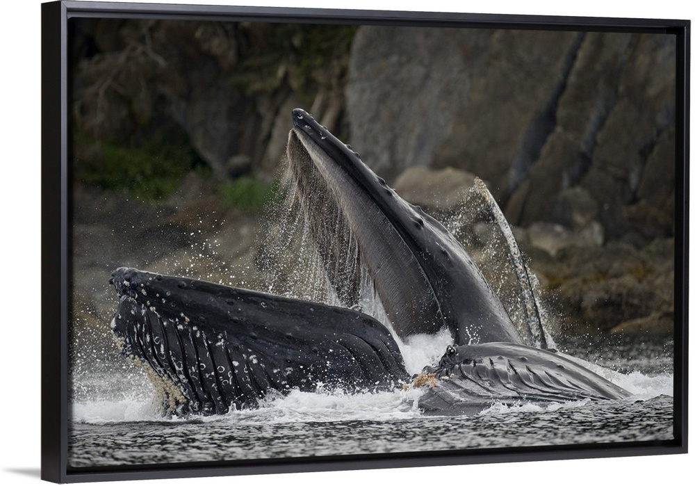 <p>USA, Alaska, Hoonah, close-up of Humpback Whale (Megaptera novaengliae) lunging from water while bubble net feeding on schools of herring in Chatham Strait.</p>