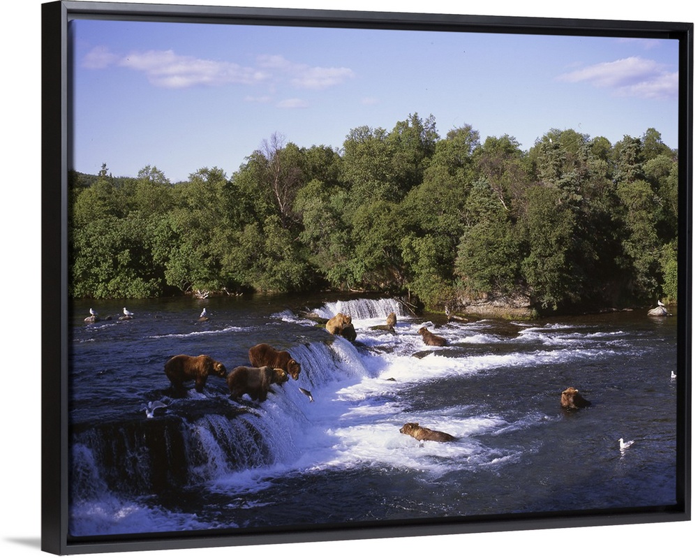 <p>Alaska, Katmai National Park. Brooks Falls. Alaska brown bears feed on spawning salmon.</p>