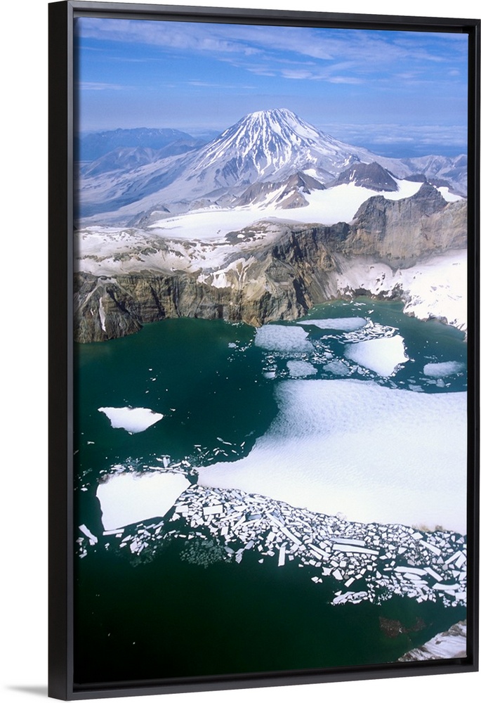 <p>North America, USA, Alaska, Katmai National Park. Aerial view of Mount Griggs towering behind the caldera of Mount Katmai.</p>