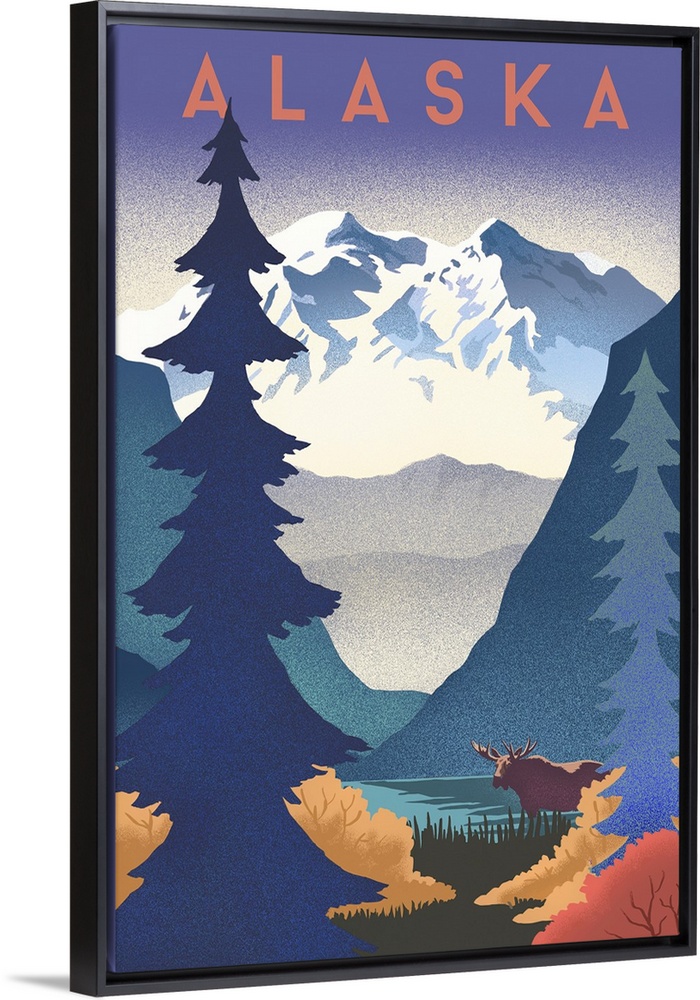 Art Mountains Trees Lantern Press United States Alaska Wildlife Moose and Elk