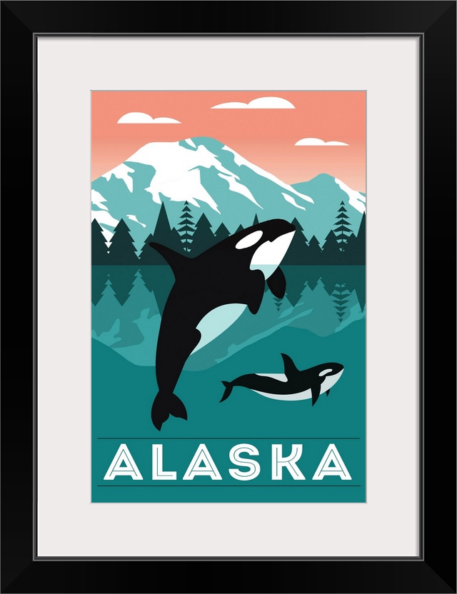 Art Mountains Lantern Press United States Alaska Travel Posters Minimal Travel Posters Wildlife Orca