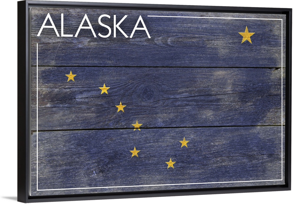<p>The flag of Alaska with a weathered wooden board effect.</p>