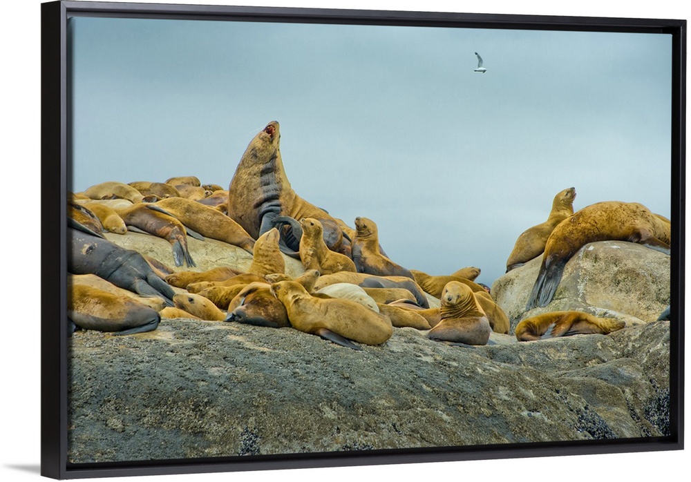 <p>Alaska, Steller Sea Lions relaxing on a rock in Glacier Bay National Park and Preserve.</p>