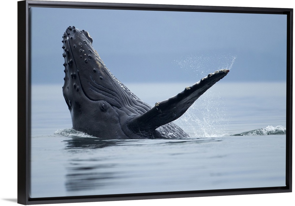 <p>USA, Alaska, Tongass National Forest, Young Humpback Whale (Megaptera novaengliae) makes eye contact while splashing on its back in Icy Strait on summer evening.</p>