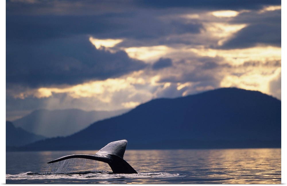 <p>Alaska, Tongass National Forest, tail flukes of Humpback Whale (Megaptera novaengliae) sounding in Frederick Sound</p>