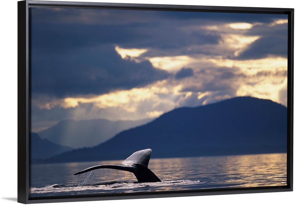 <p>Alaska, Tongass National Forest, tail flukes of Humpback Whale (Megaptera novaengliae) sounding in Frederick Sound</p>