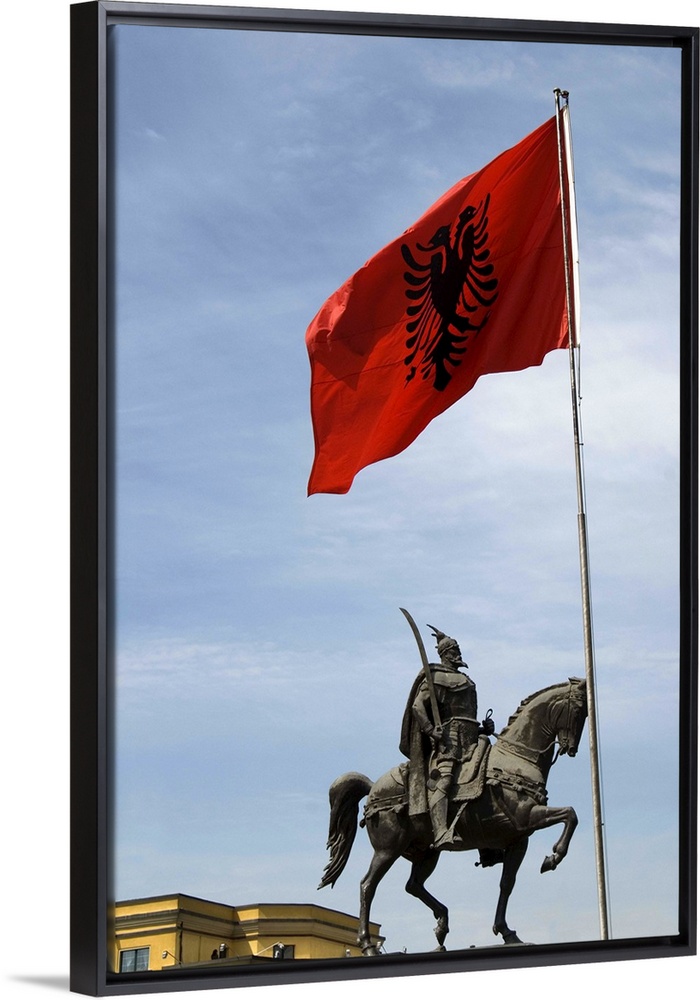 <p>Albania, Tirana, Skanderbeg statue in Scanderbeg square</p>