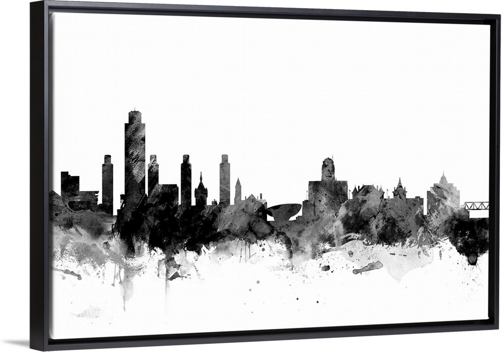 <p>Contemporary artwork of the Albany city skyline in black watercolor paint splashes.</p>