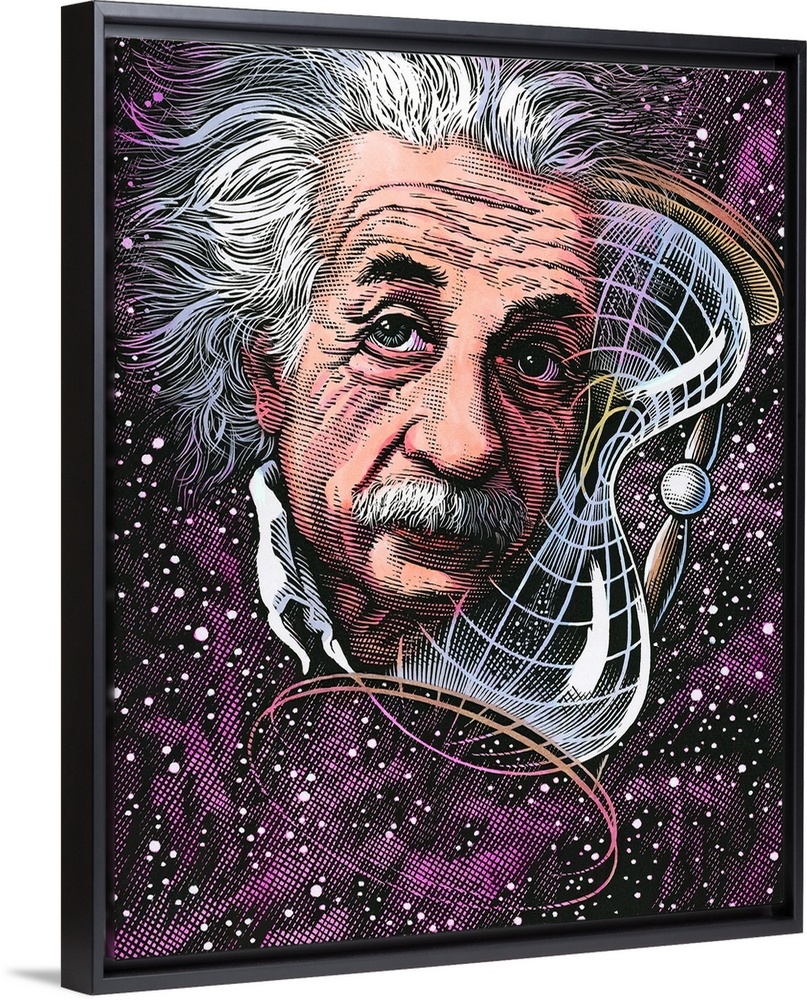 <p>Albert Einstein (1879-1955), German-born physicist. Famous for his theories of relativity, Einstein has become a cultural icon, his name synonymous with genius. In 1905, whilst working as a patent clerk, he wrote four papers, including one on special relativity. From this the idea of a space-time continuum followed and is represented here as space warped into the shape of an hourglass (at right). His paper on general relativity followed in 1916, which theorized that gravitational acceleration can be described by the curvature of space and time. His theories replaced the previously unchallenged Newtonian system, and as such have shaped modern physics.</p>