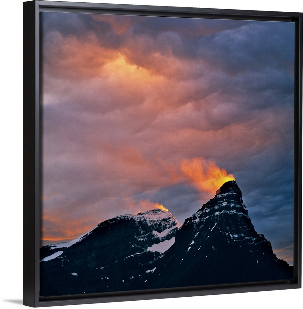 <p>Canada, Alberta, Mt. Chephren. A snow plume catches light from the setting sun on Mt. Cephron Banff NP, a World Heritage Site, Alberta, Canada.</p>
