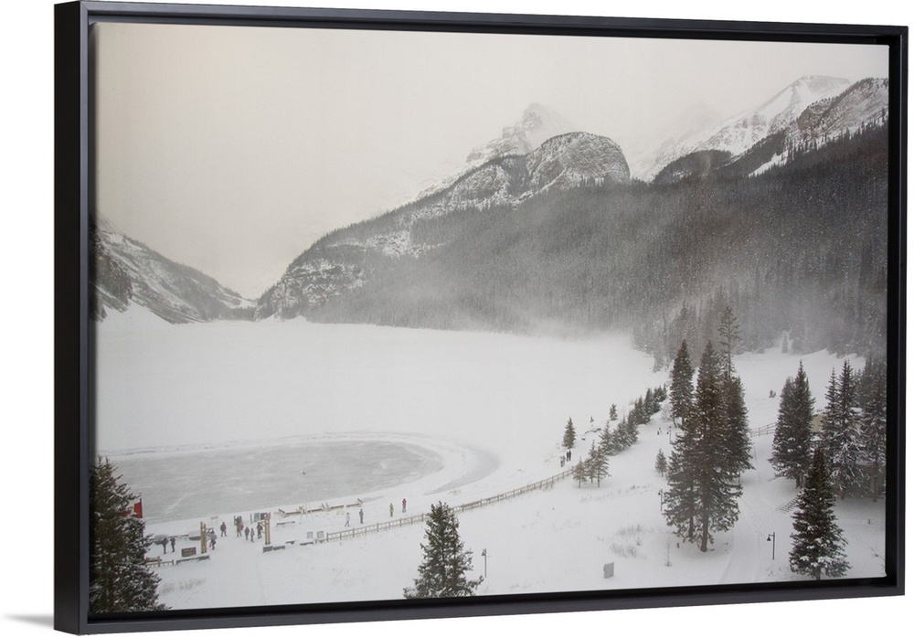 <p>Canada, Alberta, Lake Louise. Farimont Chateau Lake Louise, overview of frozen Lake Louise.</p>
