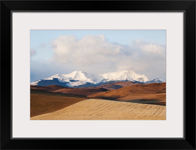 <p>Alberta Landscape With Golden Fields In The Foothills And The Canadian Rockies In The Distance; Alberta, Canada</p>