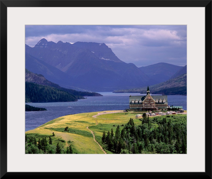 <p>Canada, Alberta, Waterton Lakes NP. The Prince of Wales Hotel is located on Waterton Lake in Waterton Lakes NP, Alberta, Canada.</p>