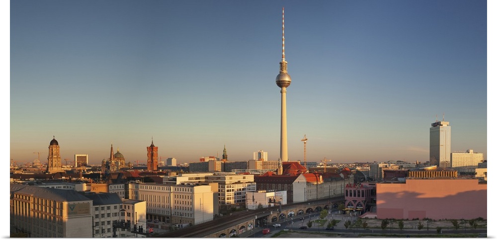 <p>View over Alexanderstrasse to TV Tower, Rotes Rathaus, Hotel Park Inn and Alexa shopping center, Berlin, Germany</p>