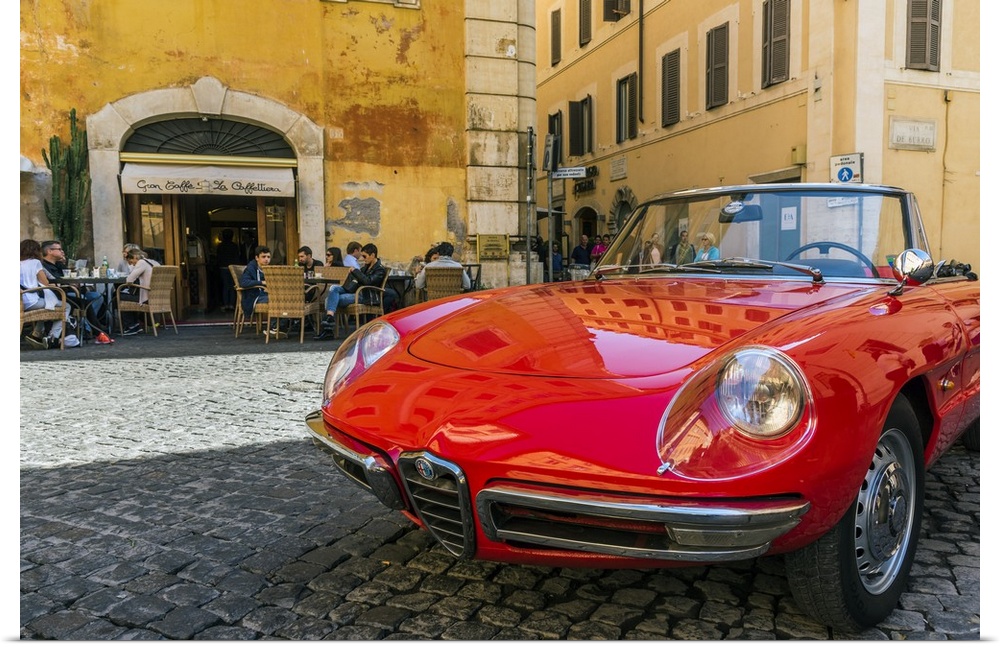 <p>Alfa Romeo Duetto spider parked in a cobblestone street of Rome, Lazio, Italy.</p>