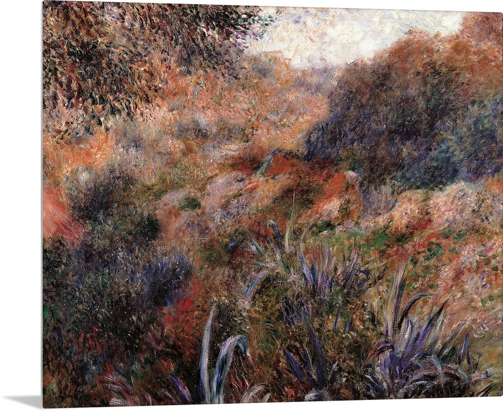 <p>Algerian Landscape, the Ravine of the Wild Woman, by Pierre-Auguste Renoir, 1881 about, 19th Century, oil on canvas, cm 65,5 x 81 - France, Ile de France, Paris, Muse dOrsay, RF1943-62. All. Algerian landscape ravine of the wild woman suburb Algiers pathw</p>