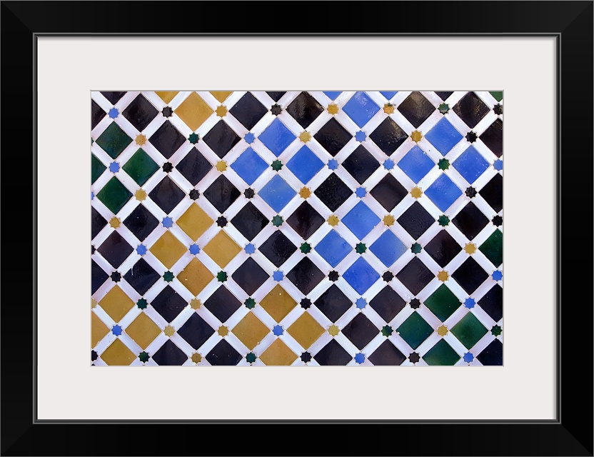 <p>Alhambra. SPAIN. Granada. Alhambra. Alhambra, Nazari Palace. Comares Palace. Court of the Myrtles. Detail of the tiles. Hispano-Moresque art. Nasrid dynasty. Decorative Arts. -</p>