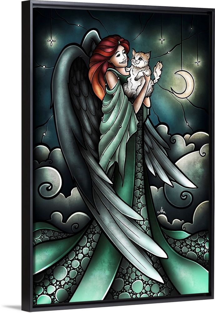 Art Contemporary Art Graphic Art Green Wall Art Mandie Manzano People Figurative Religious Art Christianity Angels Wildlife Cat