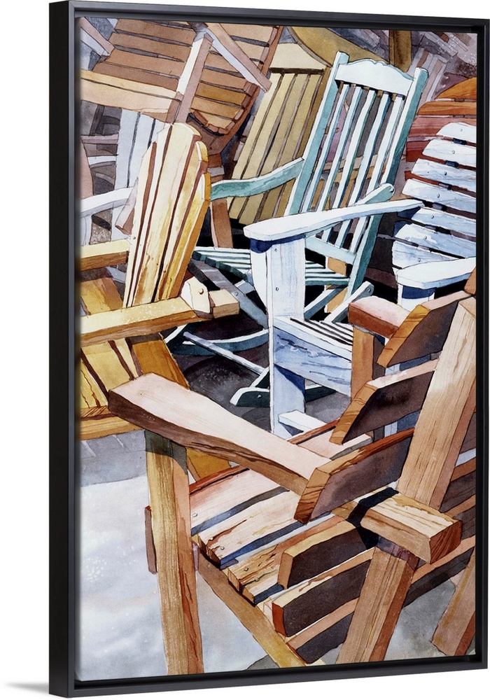<p>Watercolor painting of different Adirondack Chairs</p>