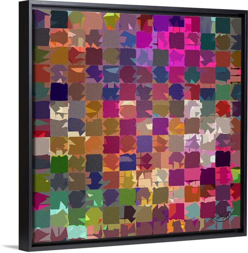 <p>Square abstract piece with a grid of colorful inorganic shapes.</p>