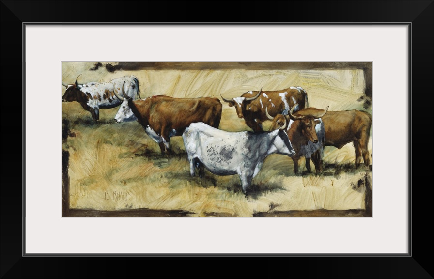 <p>Contemporary western theme painting of a bull grazing.</p>