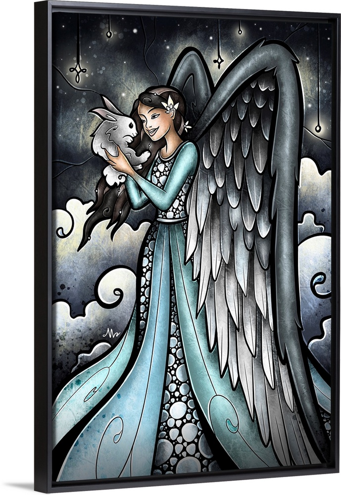 Art Contemporary Art Graphic Art Grey Wall Art Mandie Manzano People Figurative Religious Art Christianity Angels Wildlife Rabbit