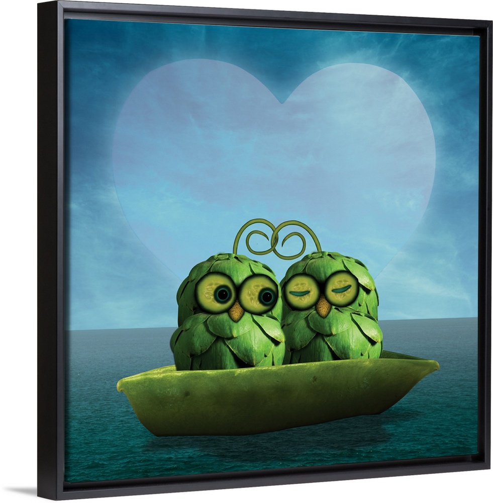 <p>Two cute owls in a boat on the ocean, in love with each other and enjoying being together.</p>
