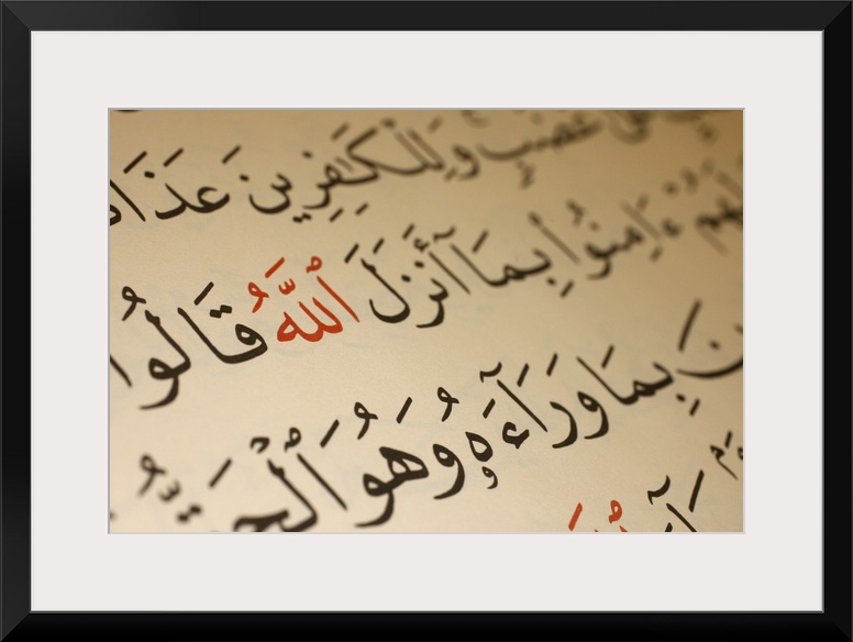<p>Allah calligraphy in Koran, Le Bourget, Seine-Saint-Denis, France, Europe.</p>