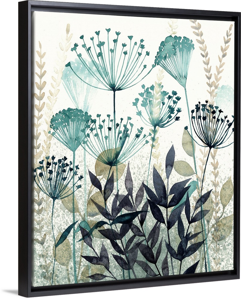<p>Contemporary artwork of garden flowers in a monochromatic color scheme.</p>