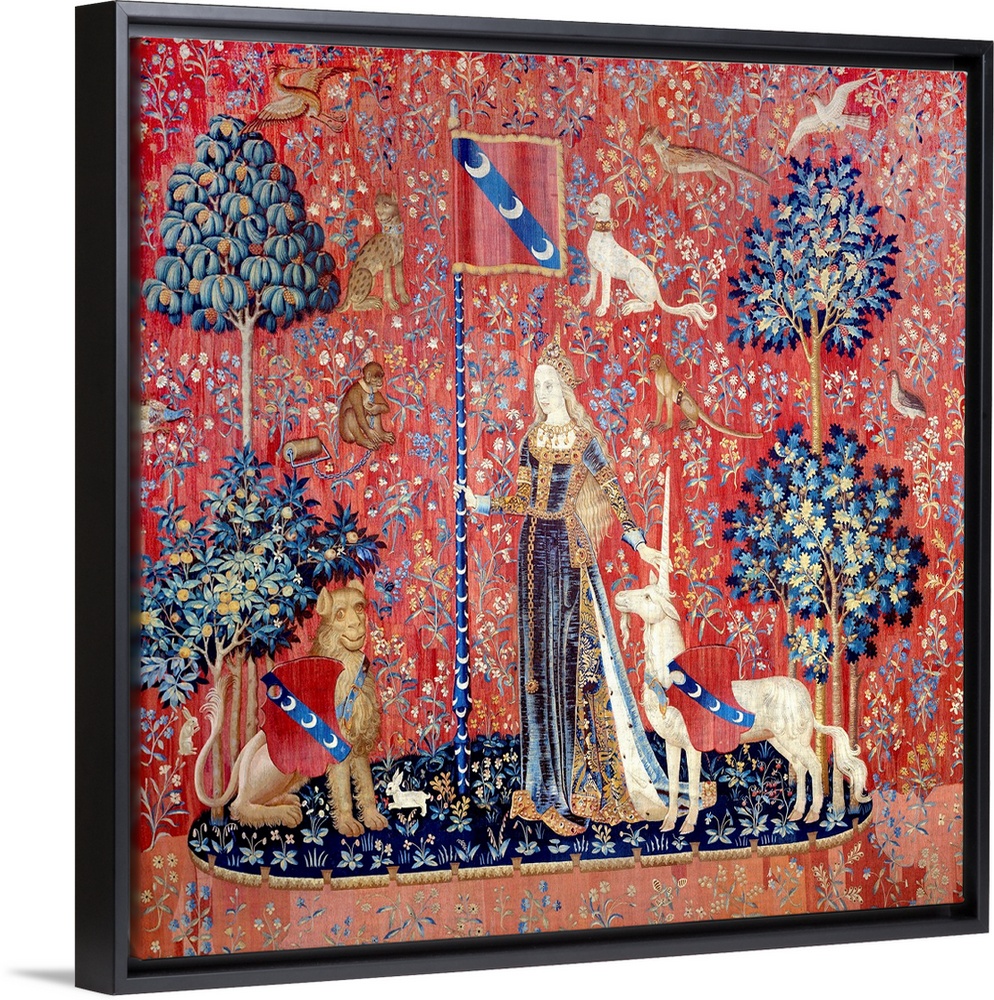 <p>Allegory of touch (Le Toucher), from the tapestry La Dame a la Licorne (Lady with Unicorn), (37x47 cm), flemish art, 1484-1500. Paris, musee national du Moyen Age, Thermes de Cluny, France</p>