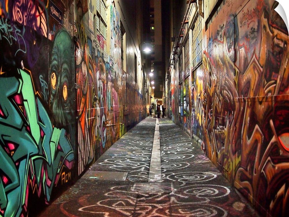 <p>Photograph of an alley with its walls covered in graffiti.</p>